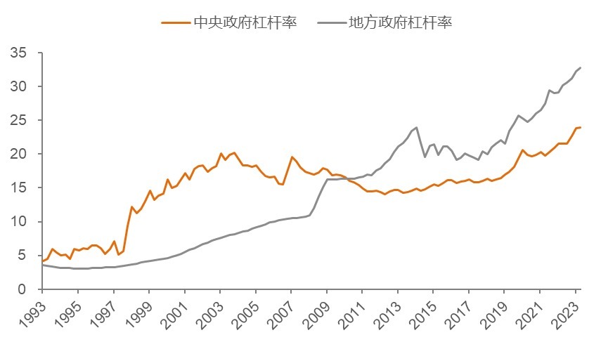 我国政府部门杠杆率(%)
