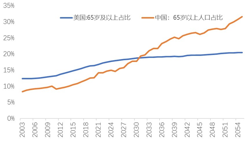中美人口老龄化率趋势预测