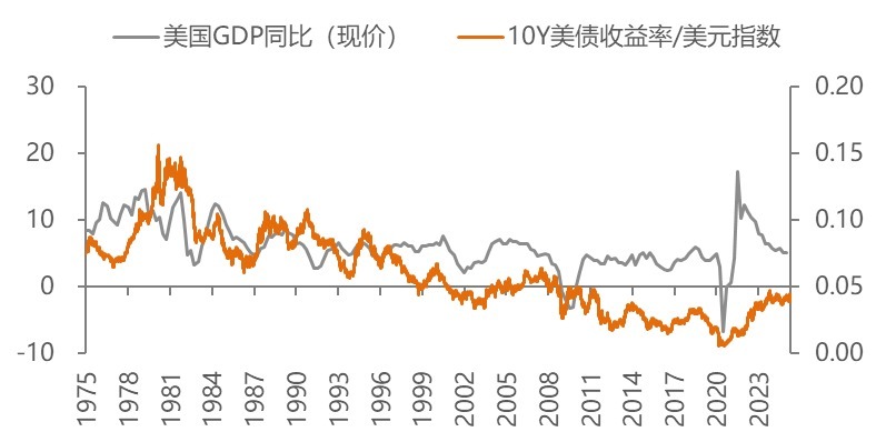 美国GDP增速与美债收益率/美元指数的关系