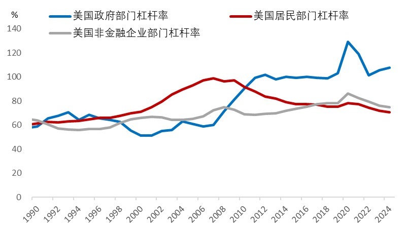 美国三大部门的杠杆率变化